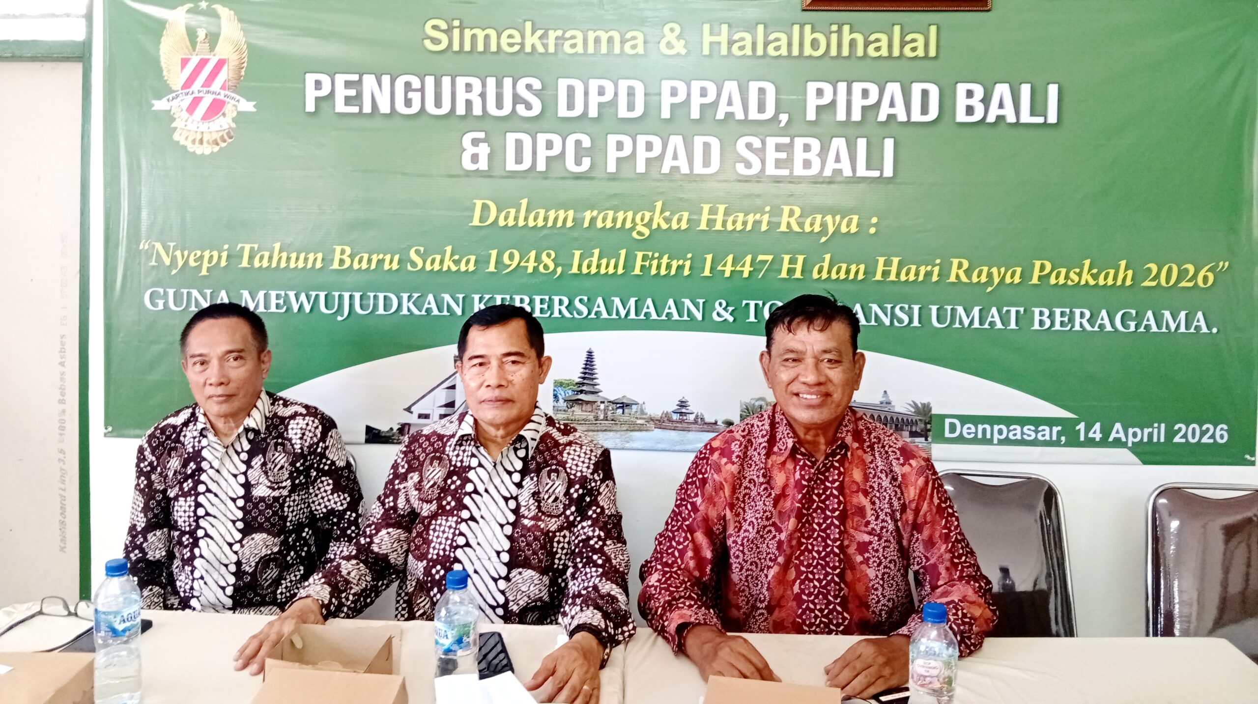 FBN-RI.com – DENPASAR | Dewan Pengurus Daerah (DPD) PPAD dan DPC PPAD serta PIPAD Prop Bali menegaskan pentingnya menjaga toleransi antarumat beragama melalui rangkaian tradisi keagamaan Simekrama dan Halalbihalal di Aula Kantor DPD PPAD, Jalan PB Sudirman G-21, Denpasar Bali pada Selasa 14 April 2026.